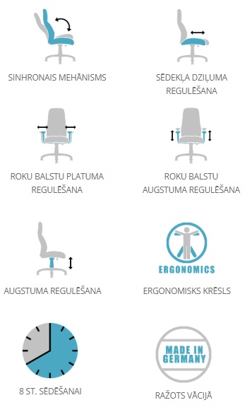 Sinhronais mehānisms: nodrošina sēdekļa un atzveltnes kustību sinhronizāciju, pielāgojoties lietotāja kustībām un saglabājot pareizu stāju.